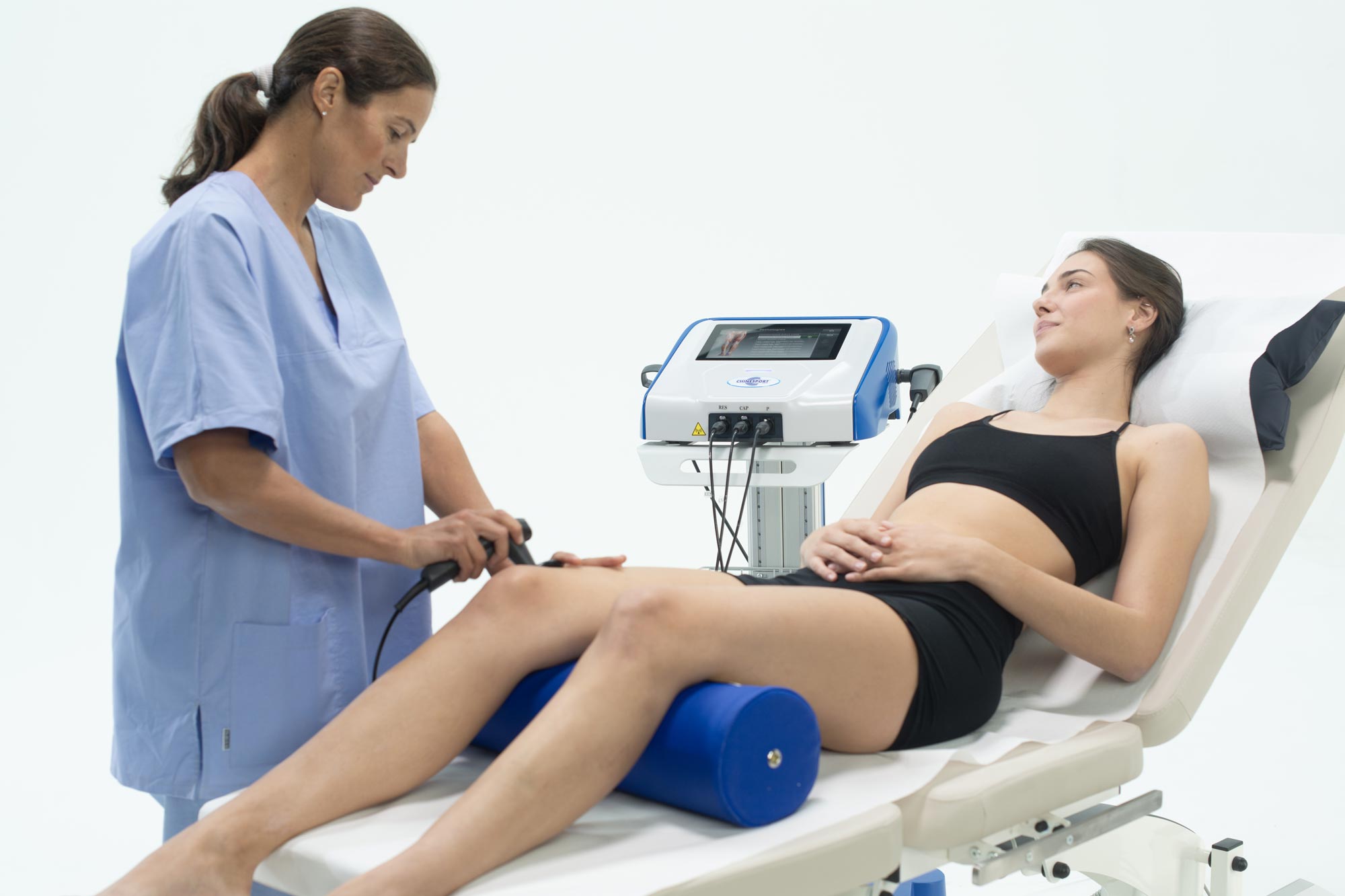 Innovative therapeutic equipment for capacitive resistive energy transfer: allows to stimulate the biological structures (tendons, muscles, joints) from the inside. Diathermy, through tissue-electromagnetic energy interaction, produces an increase in temperature that occurs within the tissues in a uniform and controlled way.