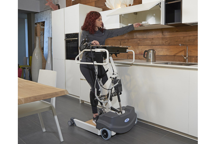 This device enables the user to assume and maintain an extreme upright position, and to move around indoor autonomously without assistance, for a more independent life at home or at work.