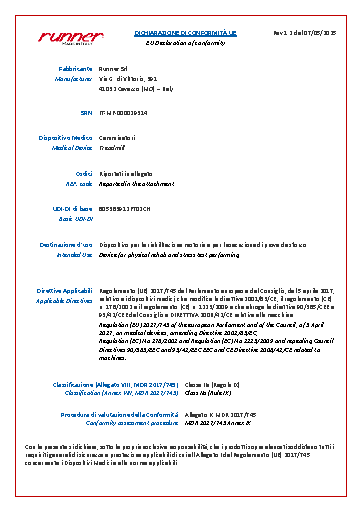 All treadmills of the Runner series can be connected to an electrocardiograph / cardio spirometer via the RS232 port. When ordering, it is therefore important to inform about the manufacturer and of the model that you intend to connect to the treadmill or ergometer. The correct communication protocol must be set in the factory, and in particular the speed unit of measurement and the serial delay in milliseconds, which vary according to the software used by each device.